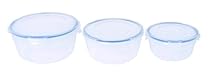 This is a set of 3 containers that are round and fit inside each other. The small one is very tiny, only big enough for salad dressings or the like. The big one is big enough for a few sliced oranges or grapefruit, so it can be used as a normal tupperware container. I love the tight fitting lids, but that is consistent with every Lock & Lock container.
