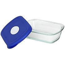 Pyrex Storage Deluxe 1-7/8-cup rectangular dish with lid includes 1-each 1-7/8-cup rectangular dish with pearl blue vented plastic cover. Pyrex Storage Deluxe products come with seal tight plastic lids for secure food storage and special steam venting tabs for just the right amount of heating pressure. They are designed specifically for reheating leftovers and convenient refrigerator storage. The shape of storage deluxe allows for nesting for organized and efficient space utilization. There's no substitute for Pyrex, the original glass bakeware. Introduced 90 years ago and made of a durable, high temperature material, Pyrex remains the ideal medium for safe, dependable food preparation.